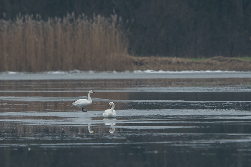Een foto van twee Kleine Zwanen op het ijs in de Starrevaartplas. Mijn tweede primeur op vogelgebied afgelopen maand December, en m'n vierde voor dit jaar. De sfeer en compositie spreken mij aan. En ik fotografeer niet heel dikwijls onder zulke winterse omstandigheden.