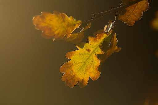 Een foto van een blad van een Zomereik in verval. Het licht en de sfeer van deze tegenlichtopname spraken mij aan. Er is een mooi en subtiel lichtrandje om het blad te zien.